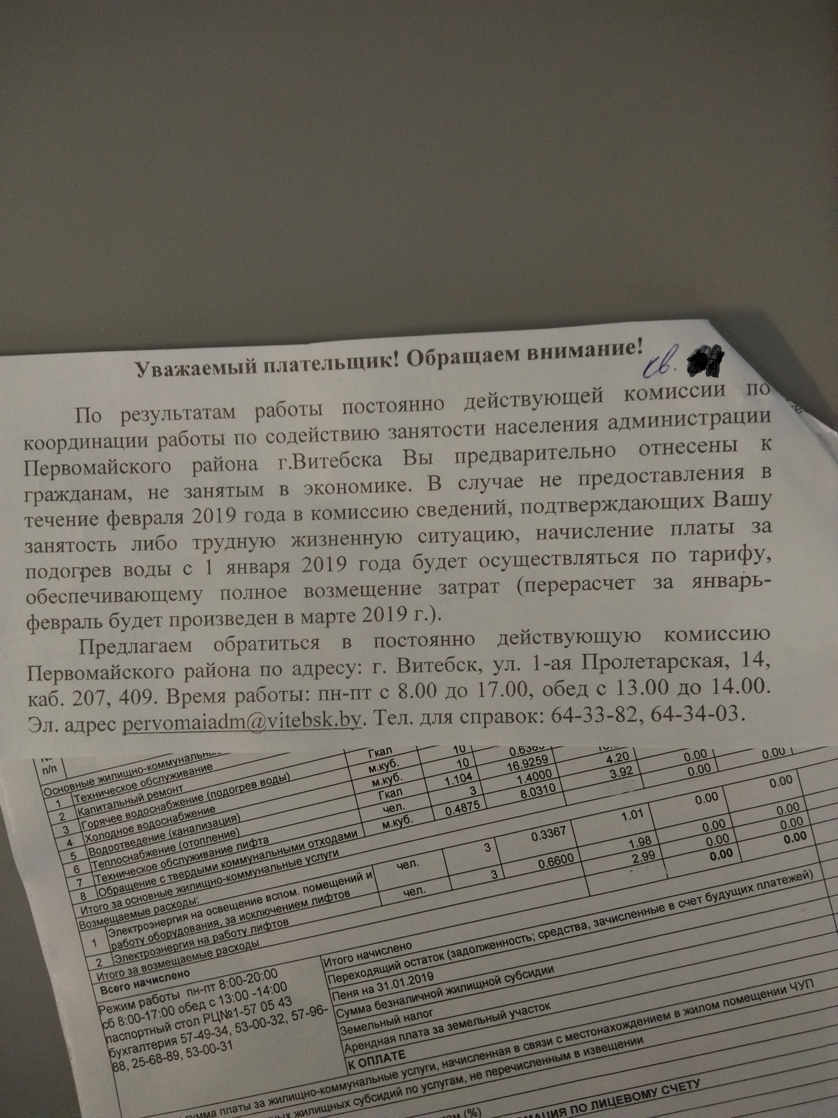 Сегодня,14.02.2019 получил по почте жировку за январь,к которой было прикреплено(!!!) степлером данное «творение» со ссылкой на государственную структуру в Первомайском районе.Обратите внимание-прикололи,написали номер квартиры без номера дома и улицы и обращаются ко мне не по фамилии,имени и отчеству,а «Уважаемый плательщик»(даже не собственник!!!).То есть это посыл в никуда.Причина понятна-не хотят облажаться и нарваться на судебный иск.Ну и остальное блаблабла-«Обращают внимание» и «предлагают»…т.е. не требуют подтвердить мою занятость,а просто,как говорил Швондер,в порядке трудовой дисциплины -придите и докажите…Но при этом просматривается прямая угроза-не подтвердите-получите ЖКУ по себестоимости …