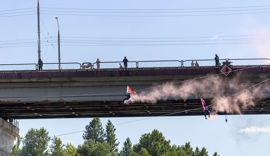 Мероприятие началось с полета колоны воздушных судов МЧС, парада плавательных средств: гидроцикла, моторных лодок, аэролодки «Пиранья-4». Бурю ярких эмоций у зрителей вызвало неожиданное появление на реке виртуоза-флайбордиста (это полёты на специальной доске, приводимой в движение за счёт реактивной силы потока воды).